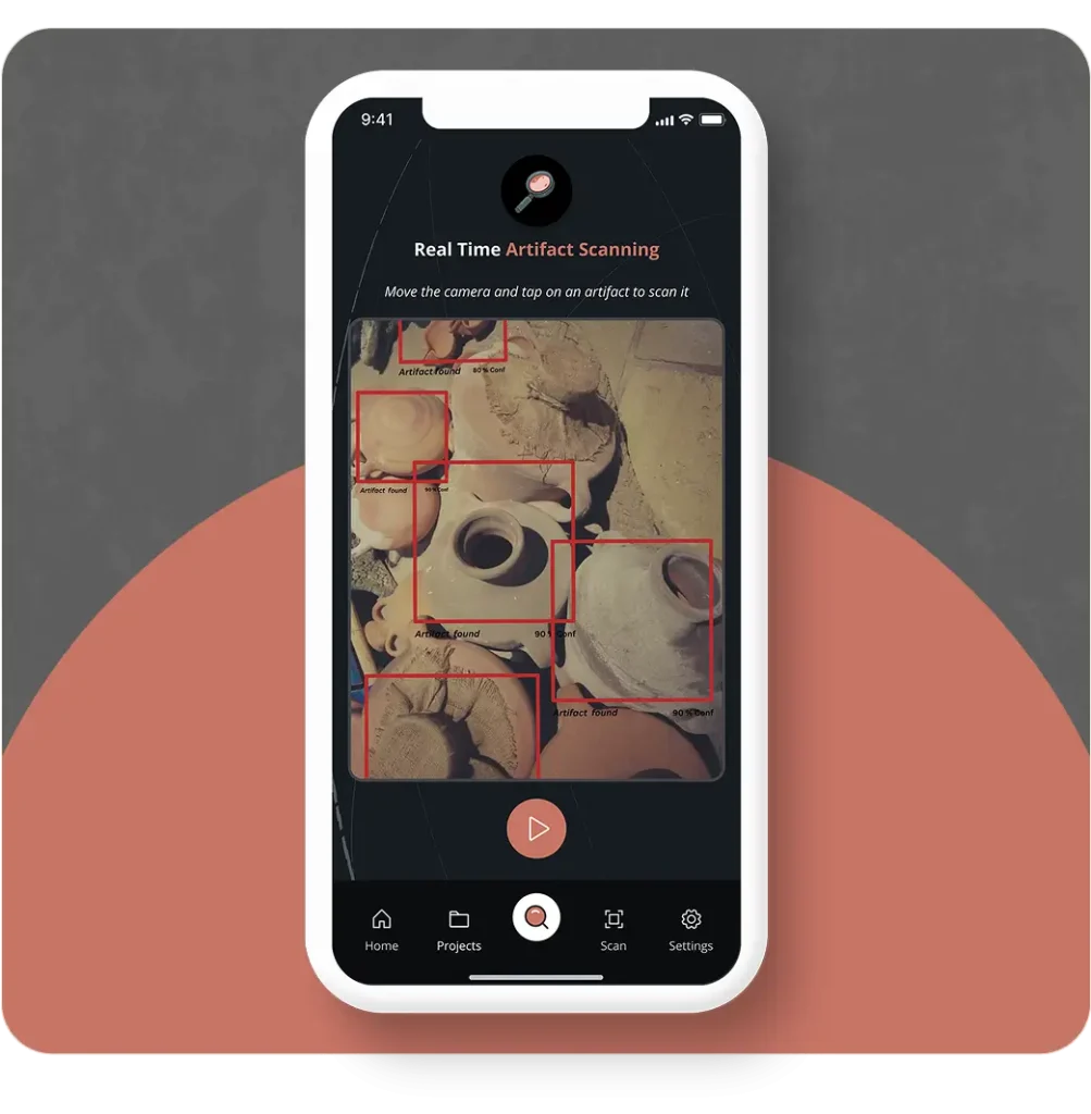 Not only does our app help you find an artifact, our AI will help you identify the artifact, its style, its shape, and its time period.